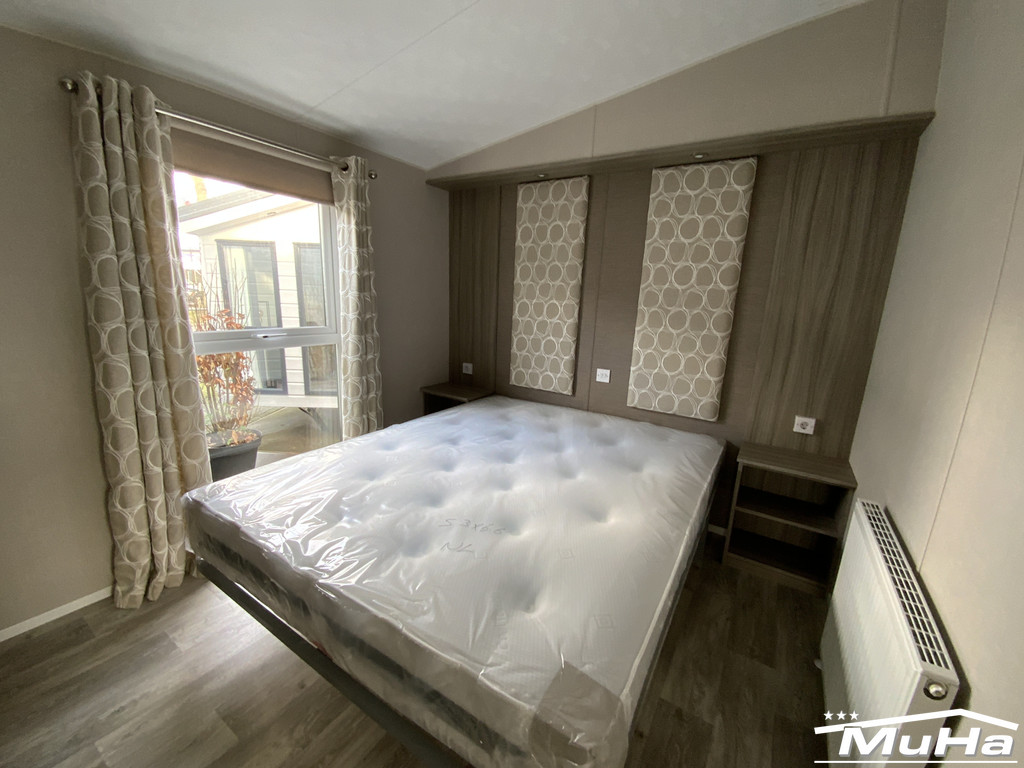 Das Chalet wird komplett bezugsfertig geliefert. Vorhänge und Jalousien sorgen für Privatsphäre und ein gepflegtes Erscheinungsbild. Die Schlafzimmer sind mit Betten und Matratzen ausgestattet.